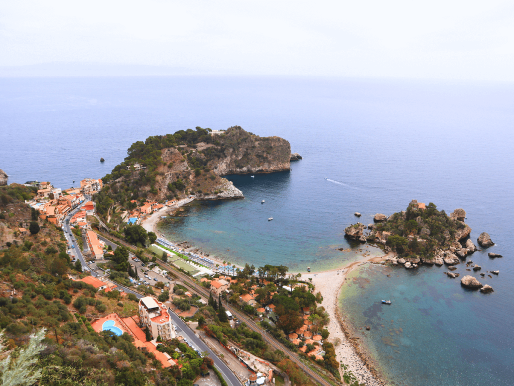 Isola Bella ligt in een kleine baai aan de voet van Taormina. Het eiland is door een smalle zandbank verbonden met het vasteland, waardoor het bij laag water te voet bereikbaar is. Het omliggende water is een beschermd natuurreservaat, wat bijdraagt aan het behoud van de rijke biodiversiteit. Dit maakt het een ideale plek voor snorkelen en zwemmen. Mocht je niet elke keer op en neer willen lopen naar het strand dan kan je ook de kabelbaan gebruiken. Dit kost ongeveer 3 euro en dit brengt je voor een groot gedeelte naar boven of beneden.